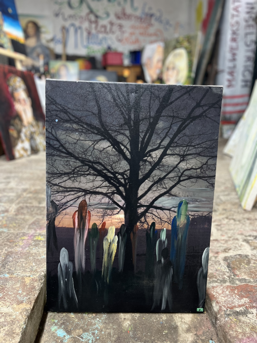 Gerade ist mir in meinem Atelier noch ein Gemälder aus einer ganz alte Ausstellung aus dem Jahr 2013 ins Auge gefallen. Es ging um "Baumgeister"... und die Naturwesen, die man früher für existentiell ansah. Mich hat das immer so fasziniert, weil ich einfach immer sehr Naturverliebt war... und diese literatur, die ich damals gelesen habe, das hat mich damals sooooo sehr ermutigt, eine Ausstellung dazu zu schaffen. Ich wollte, dass meine Vernissage-Besucher bzw andere Menschen auch darüber nachdenken und sich nicht verschließen vor unserer Geschichte und unseren alten Werten und dem alten Glauben. Wenn mir etwas wichtig ist, dann male ich immer. Und dann gehe ich damit in Kommunikation. Das ist meine Art "Politik" zu machen oder zu sensibilisieren.