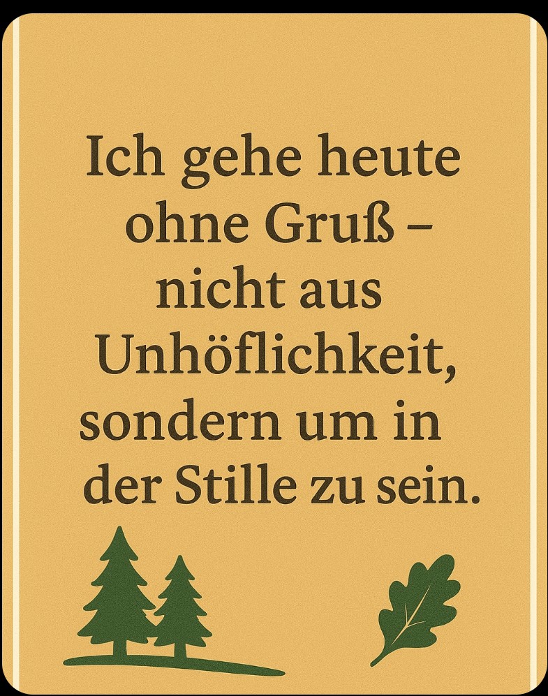 (Die Leute sollten sich lieber tief mit der Natur verbinden, darin das Ewige wahrnehmen, anstatt quasselnd durch die Gegend zu laufen und andere zum Grüßen zu nötigen. Sorry. Wird das überhaupt noch verstanden? In aller Tiefe? 🕉️)